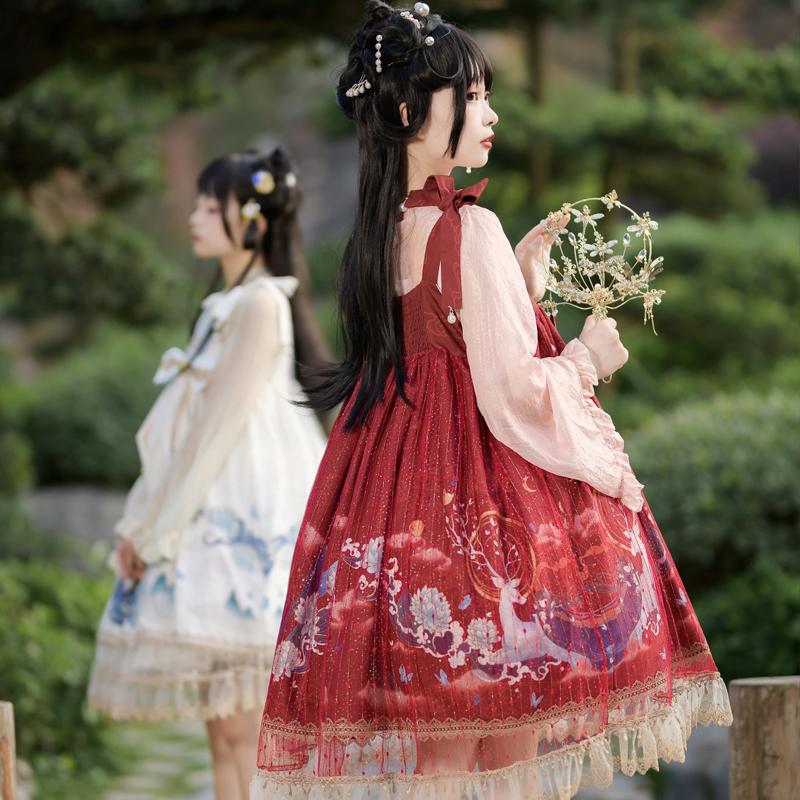 【カラー】レッドワンピース+インナーピンクシャツ, ホワイトワンピース+インナーアプリコットシャツ
