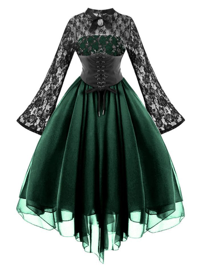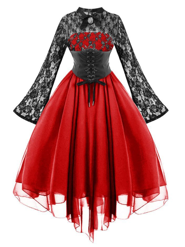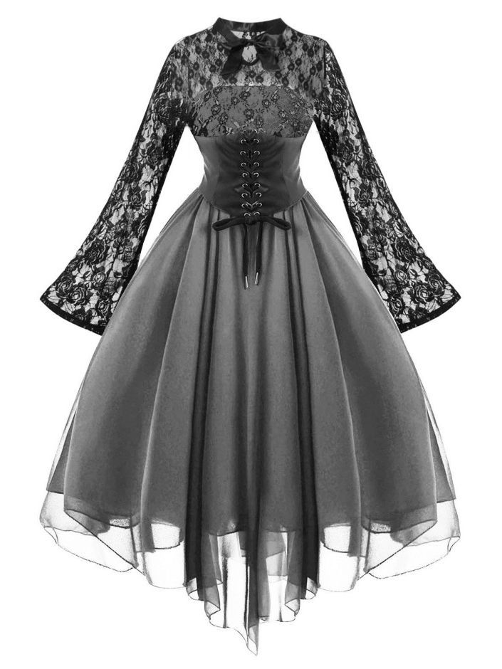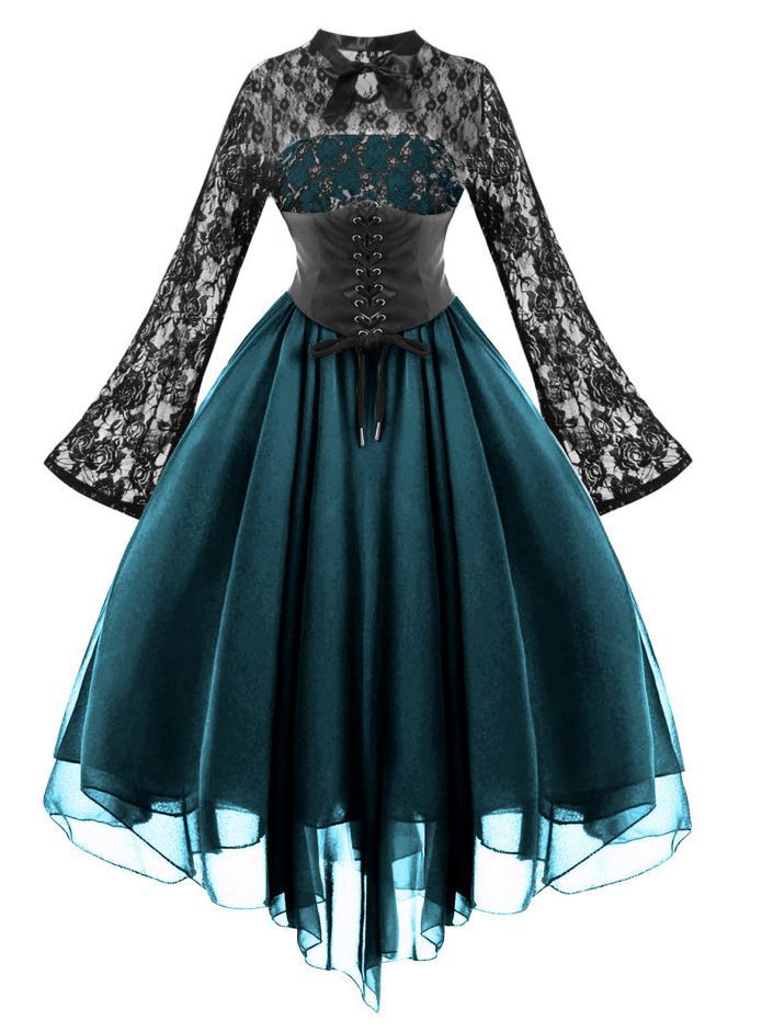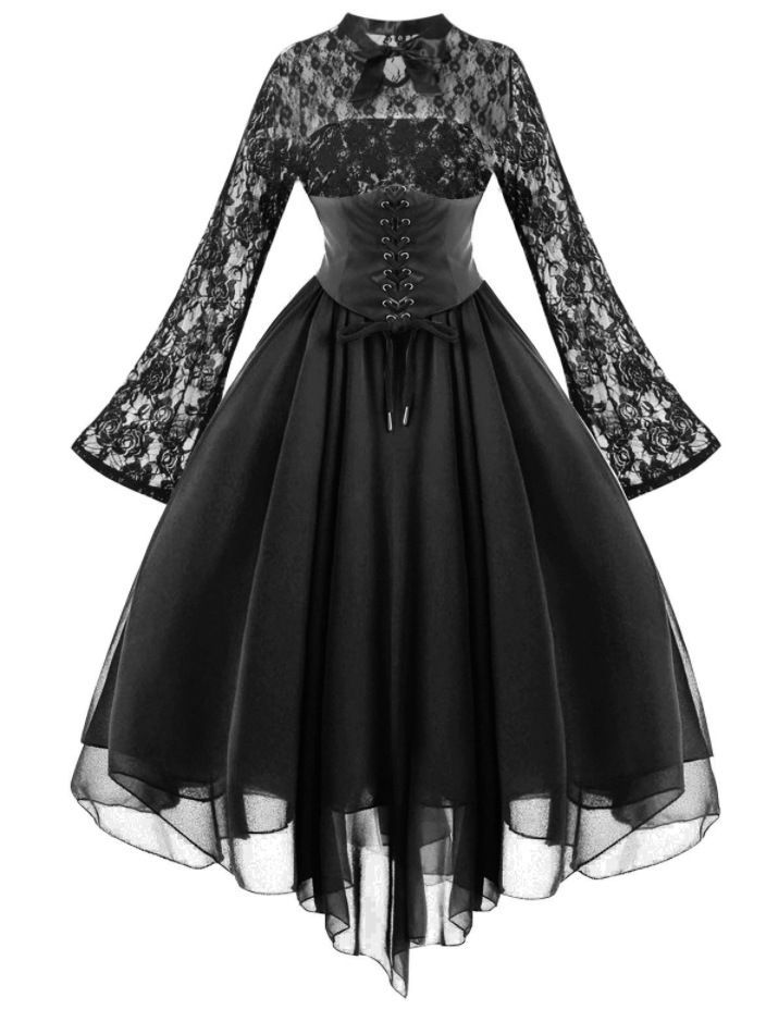 繊細な花柄総レースの長袖と本格的な編み上げコルセットが美しいロリータファッションのワンピースです。