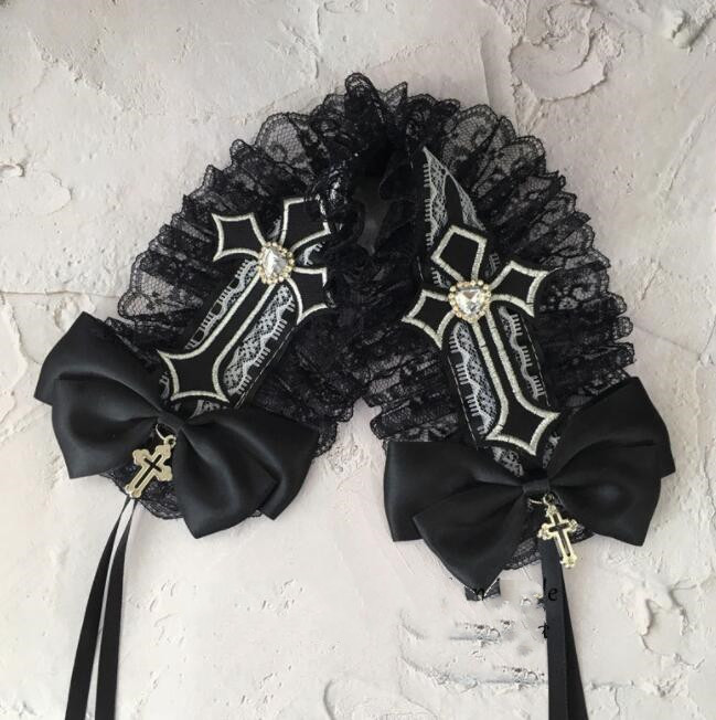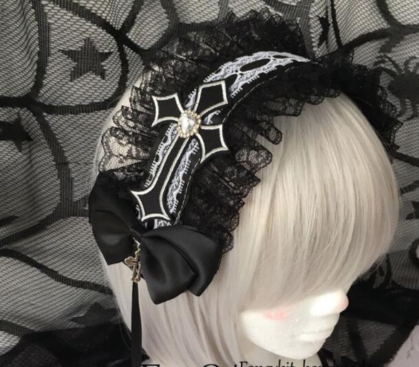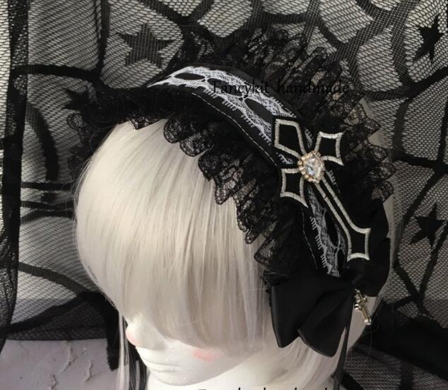 黒レースと十字架モチーフが美しいゴシックロリータファッション用ヘアアクセサリーです。