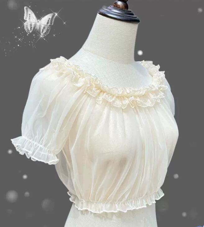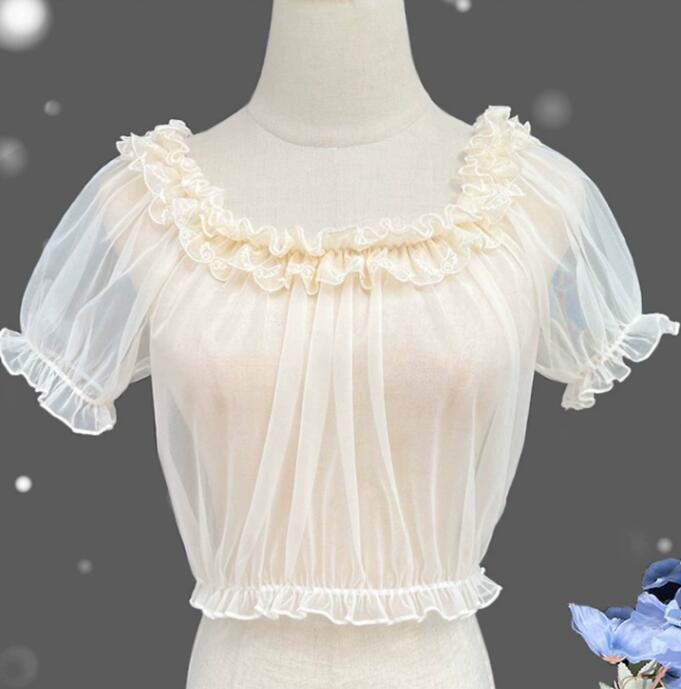 甘ロリータの魅力を存分に楽しめる透け感のある半袖ブラウスです。