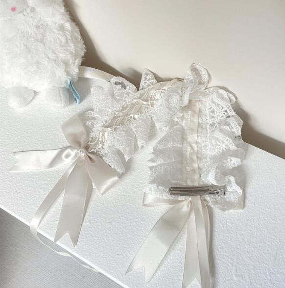 繊細なフリルとサテンリボンが可愛らしさを演出するヘアアクセサリー。