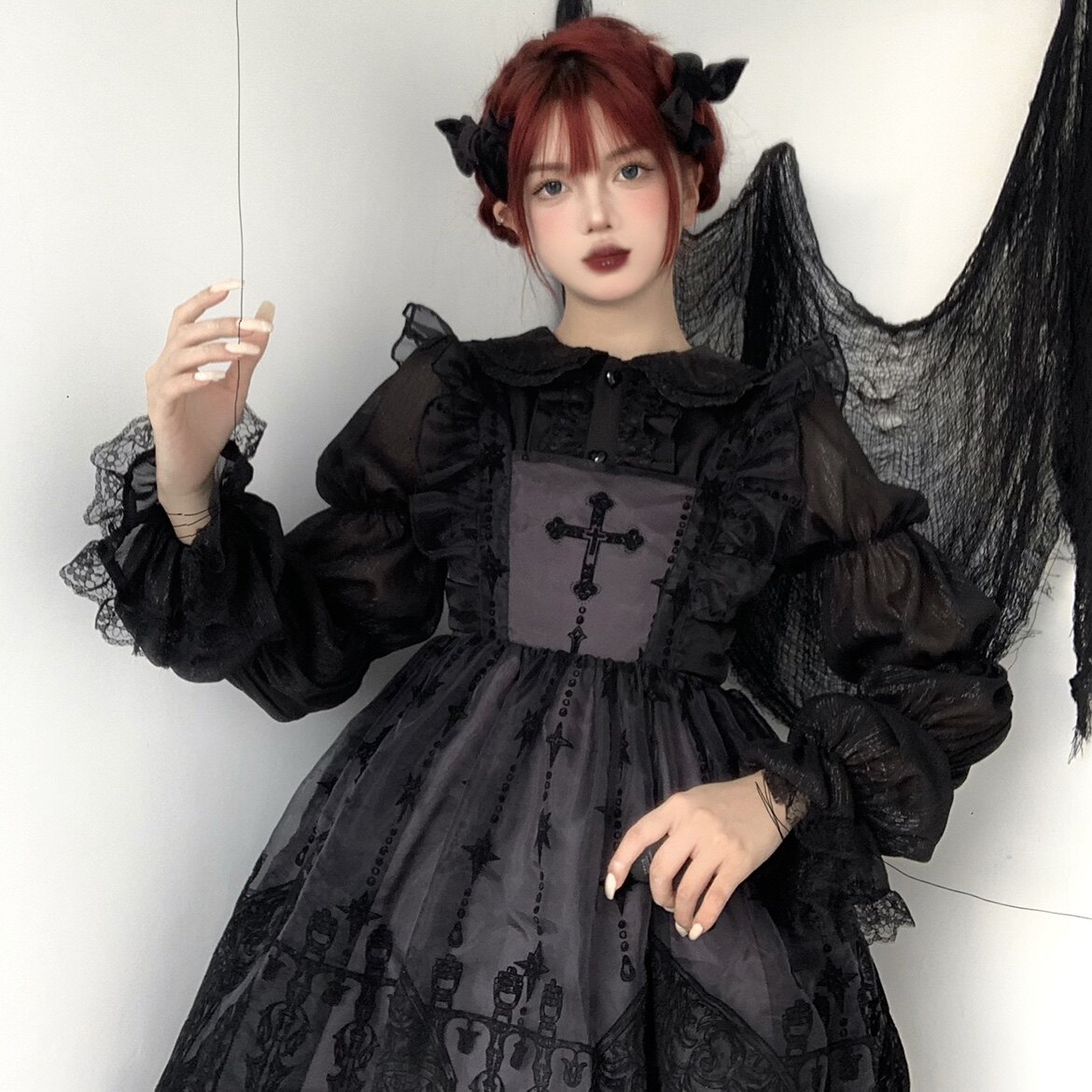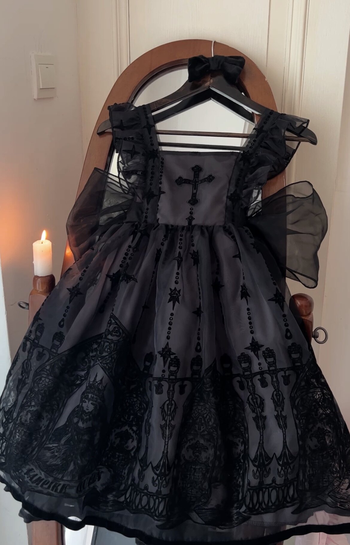 ロリータファッションの代表的なゴスロリスタイルを体現した、幻想的なワンピースです。