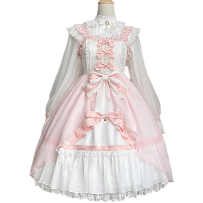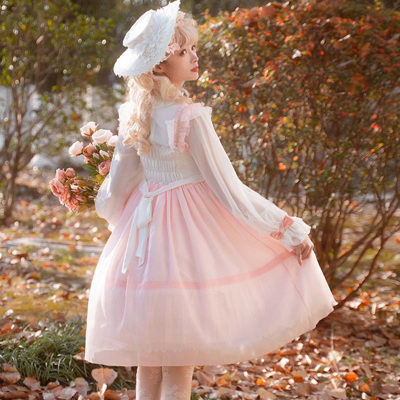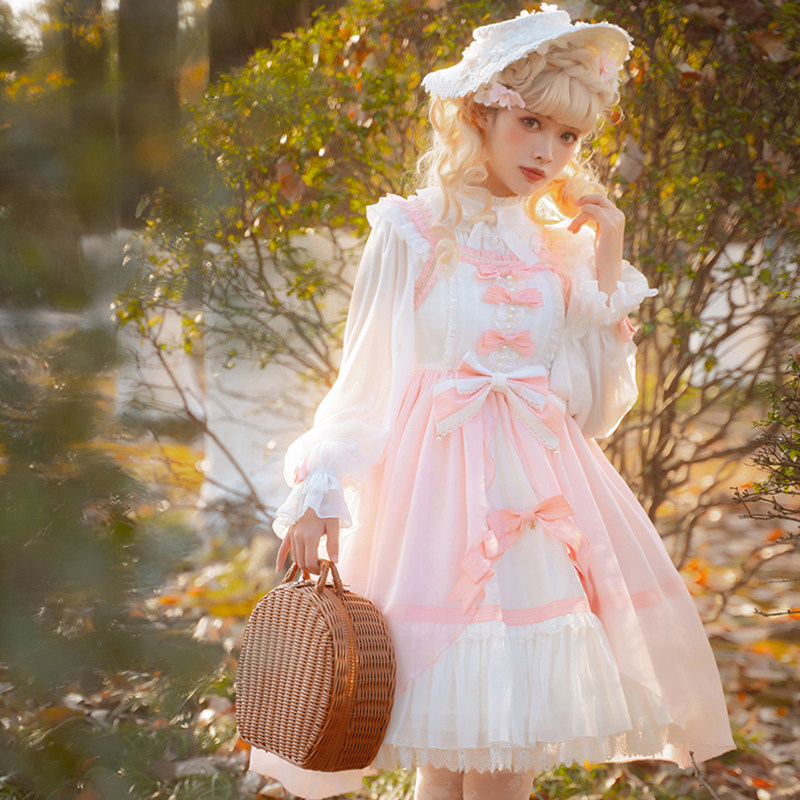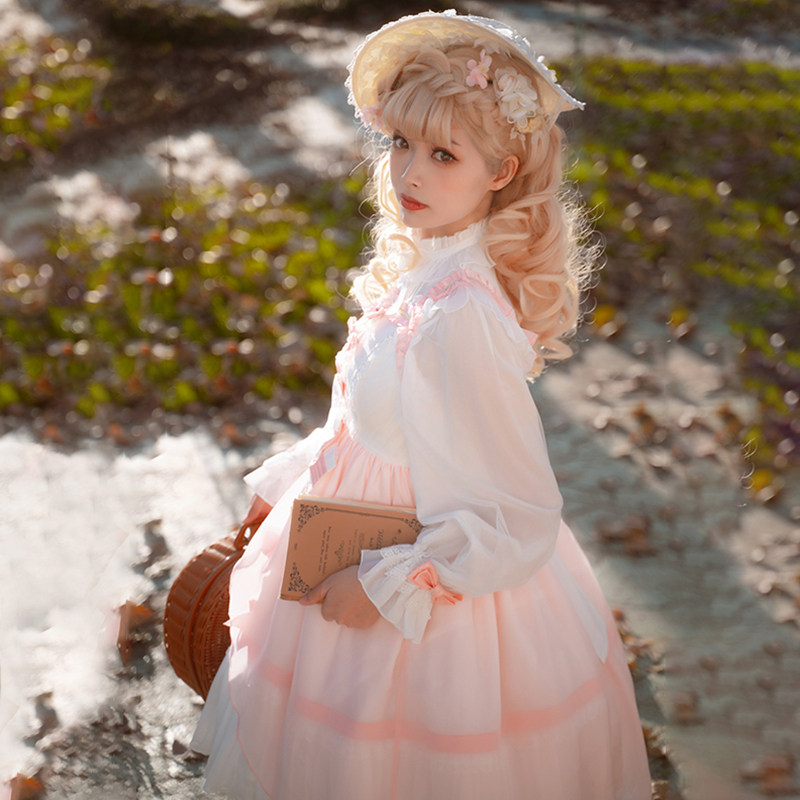繊細なフリル襟と透け感のある袖が可憐なロリータファッションのワンピースです。