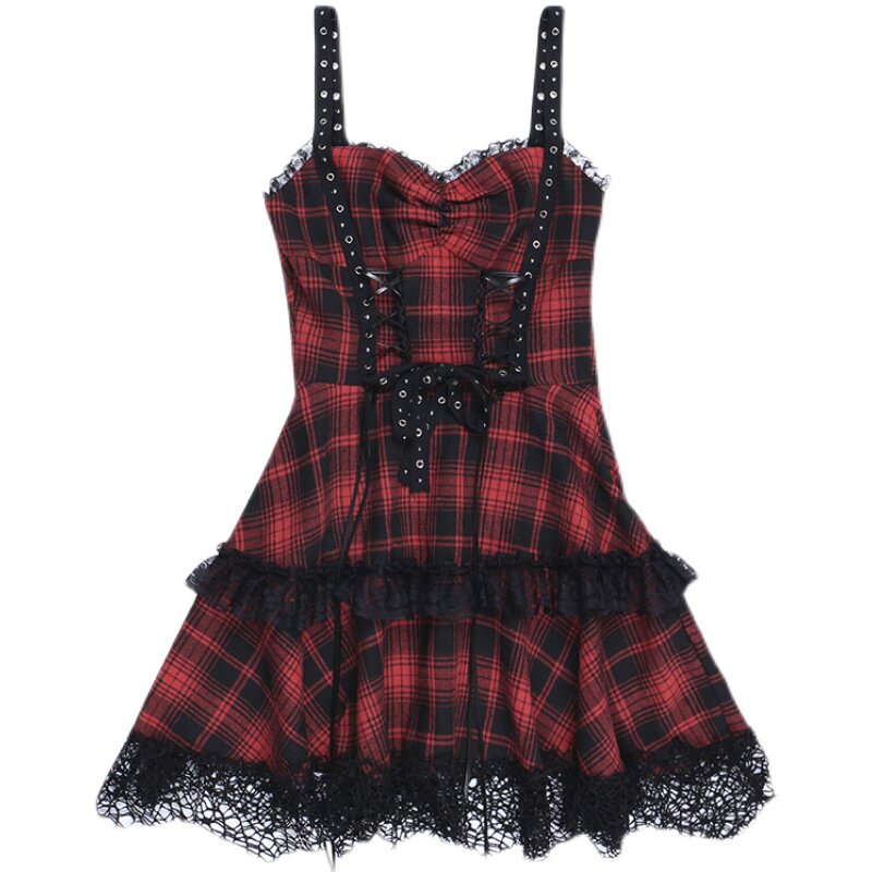 格子柄の生地にたっぷりのフリルと繊細なレース装飾を施し、甘さと辛さが絶妙に調和した一着に仕上げました。