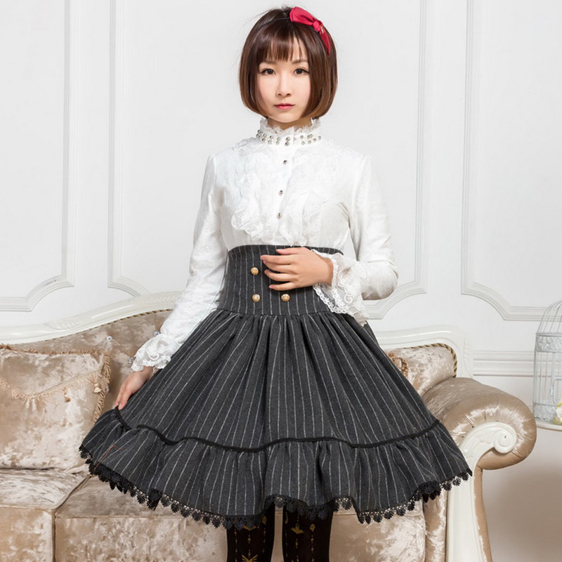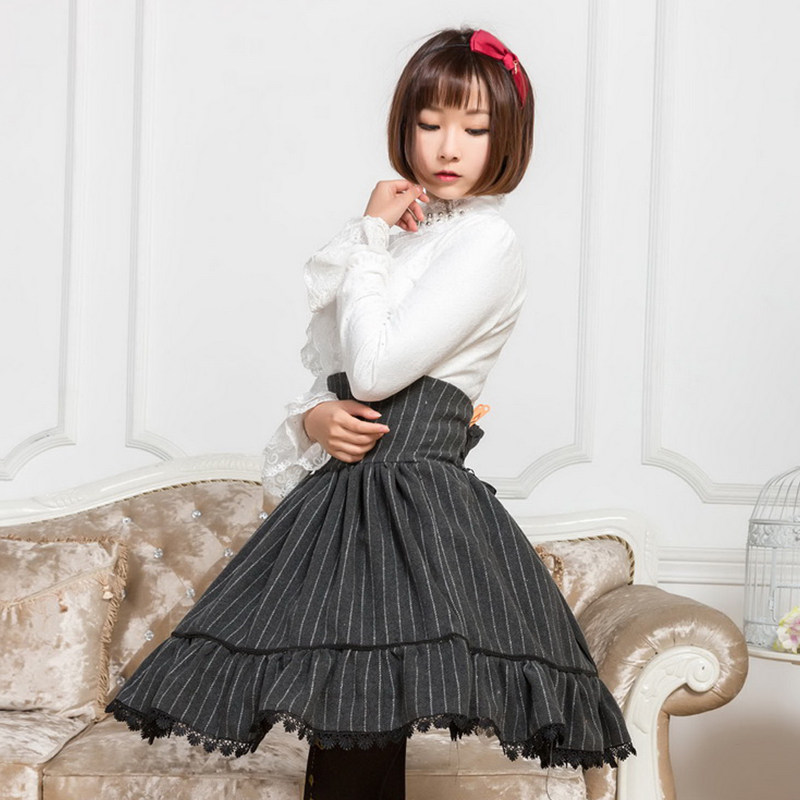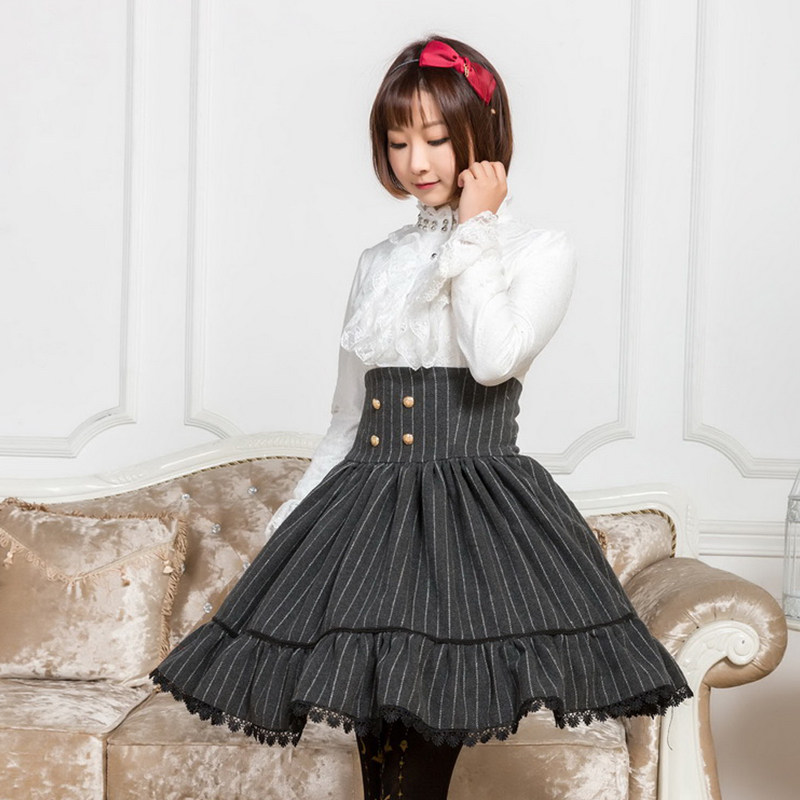 ロリータファッションの中でもゴスロリらしいクラシカルな雰囲気を演出できる縦縞柄のハイウエストスカートです。