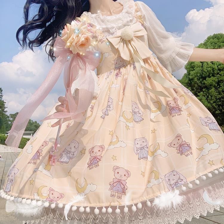 クマウサギ柄が可愛いロリータソフトスリープワンピースです。